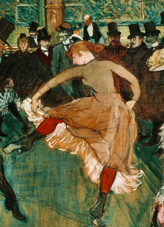 The detail here is from Toulouse-Lautrec’s painting “At the Moulin Rouge, the Dance” (1890), which does not depict a lunatics’ ball, but this dancer reminds me of Fanny. Also of Jane Avril, the most famous dancer at the Moulin Rouge, who claimed that she made her debut as a dancer at le Bal des Folles (the annual lunatics’ ball at La Salpêtrière Mental Hospital) when she was a young patient in Jean-Paul Charcot’s hysteria ward. Even if you don’t know her name, you’d recognize Jane from Toulouse-Lautrec’s posters and paintings.